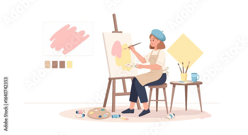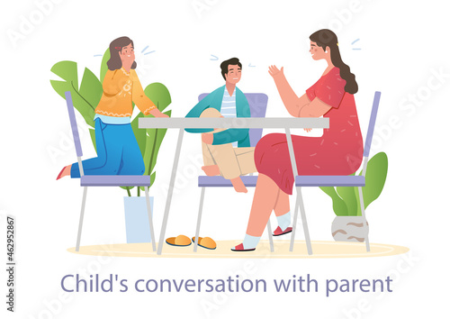 Уставшая мама, находящаяся в стрессе, работает на компьютере, в то время как ее ребенок шумит, играя с самолетом, плоская векторная иллюстрация. Удаленная работа, фриланс. Родительский стресс, родительские проблемы при воспитании детей.