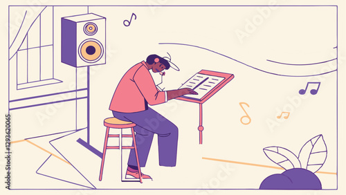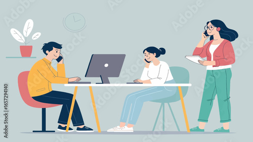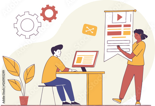 Напряженный офисный работник за столом векторная иконка, изолированная на белом фоне