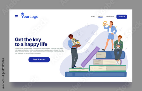 Векторный шаблон веб-сайта студенческого кредита, дизайн веб-страницы и целевой страницы для разработки веб-сайтов и мобильных сайтов. Инвестиции в образование, экономия денег на учебу.