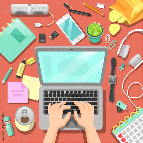 Студент смотрит школьные лекции онлайн и делает заметки. Векторная иллюстрация концепции дистанционного образования и онлайн-обучения. Изучайте школьный курс дома. Видеозвонок с учителем или частным репетитором.