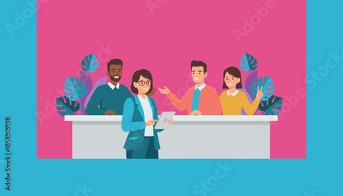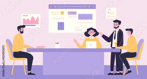 Векторная иллюстрация школьников мальчика и девочки, сидящих за столом в классе. Учащиеся на уроке концептуального элемента дизайна в плоском стиле.