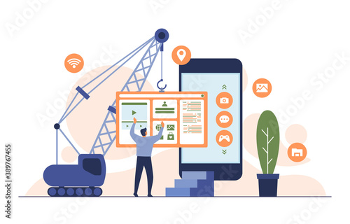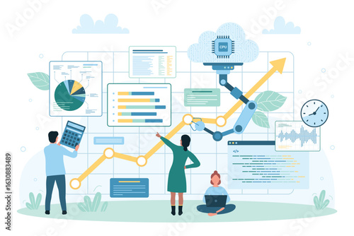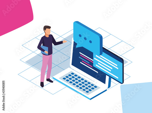 Студенты, обучающиеся дома с помощью компьютеров, плоская векторная иллюстрация. Мужской и женский персонаж с книгами, телескопом. Онлайн и дистанционное образование, электронная библиотека, онлайн-школа.