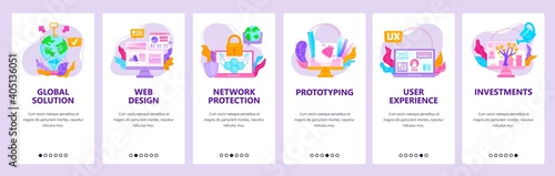 Изучайте школьные предметы: химию, физику, астрономию, литературу, ботанику и математику. Экраны мобильных приложений. Векторный шаблон баннера для веб-сайта и мобильной разработки. Иллюстрация дизайна веб-сайта.