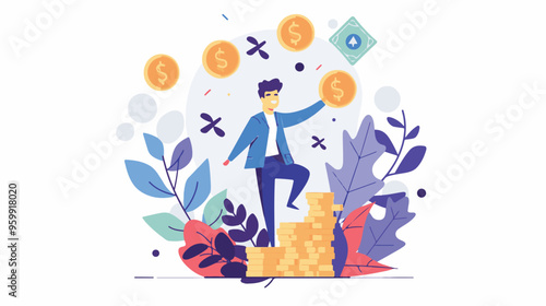 Супергерой-бизнесмен, стоящий на огромном золотом кубке, деловая команда празднует победу, векторная иллюстрация. Концепция успеха, достижений команды для веб-баннера, страницы веб-сайта и т.д.