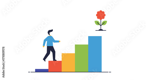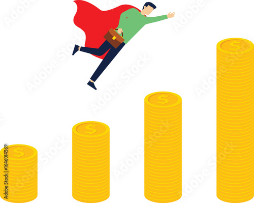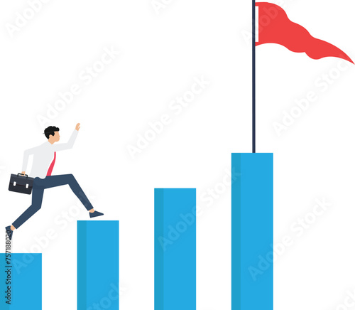Успешные деловые люди векторная плоская иллюстрация, изолированная на белом фоне. Бизнесмен, супергерой, победитель, празднующий успех с наградой, поднимающийся вверх по столбчатой диаграмме, планирующий достичь цели