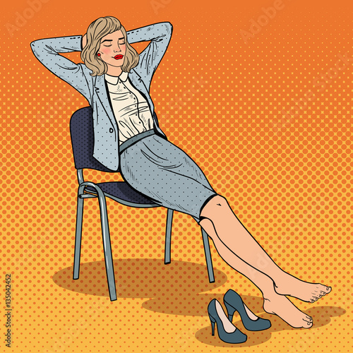 Успешная деловая женщина сидит в кресле векторная иллюстрация в стиле комического поп-арта.