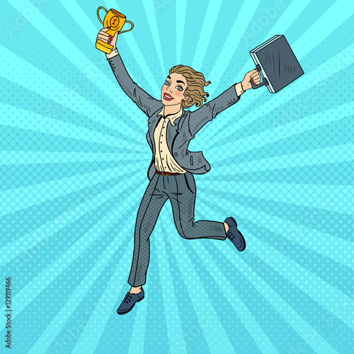 Успешный бизнесмен. Карьерный рост и продвижение по службе. Успех в бизнес-концепции. Векторная иллюстрация в стиле ретро-комиксов поп-арта.