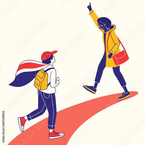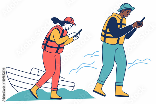 Мать, гуляющая со своим сыном, ест мороженое, векторная плоская иллюстрация, изолированная на белом фоне. Летние каникулы, каникулы, лето.