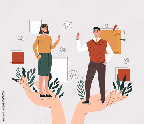 Мужчина и женщина танцуют, векторная плоская иллюстрация, изолированная на белом фоне. Пляжная вечеринка, каникулы, летние каникулы, летнее время.