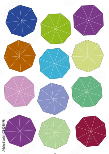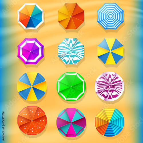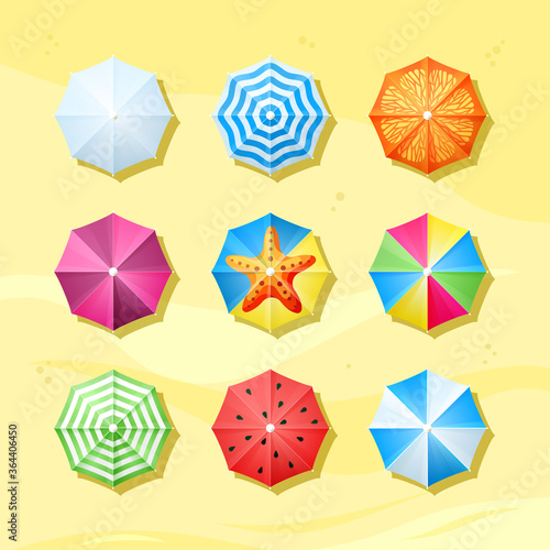 Набор значков летнего пляжного зонтика. Векторная иллюстрация вида сверху, изолированная на белом фоне.