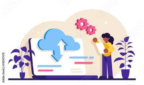 Летняя открытка с девушкой, загорающей на пляже, векторная иллюстрация с плоским видом сверху. Пляжный тропический отдых, летние путешествия, внештатная композиция для плаката, листовки, баннера и т.д.