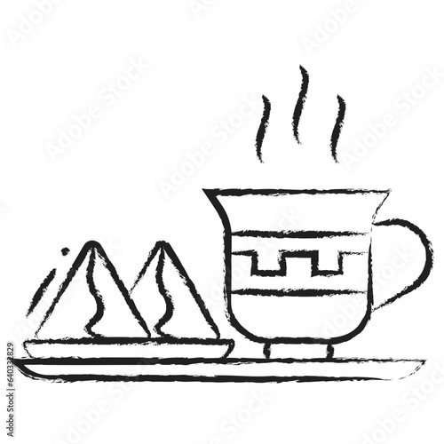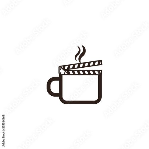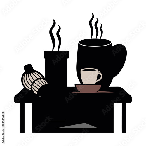 Винтажный логотип летнего лагеря с дымящейся кружкой чая над горной вершиной. Значок лагеря "Приключение на свежем воздухе в диком лесу" на белом фоне. Эко-путешествия и туризм