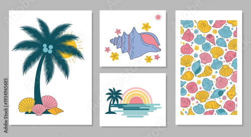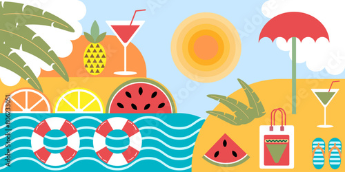 Иллюстрация векторного дизайна меню летнего пляжного бара с напитками. Вечеринка на тропическом морском побережье во время каникул с плакатом алкогольного напитка. Яркий абстрактный узор брошюры