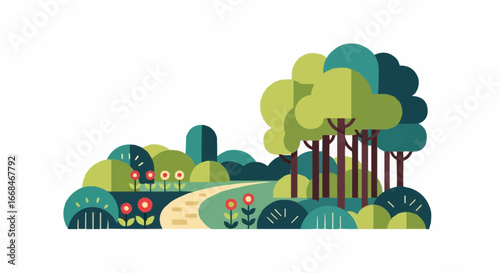 Векторная иллюстрация природного пейзажа летнего леса. Лесной массив на естественном фоне, вырезанный из бумаги в стиле оригами. Спасите мир с помощью концепции экологии и сохранения окружающей среды
