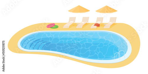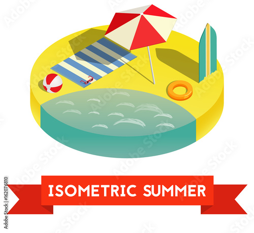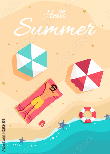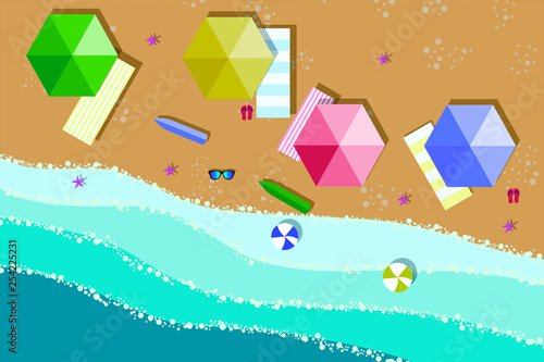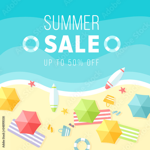 Векторный баннер концепции летней распродажи. Тропический пляж в стиле бумажного искусства. Иллюстрация, вырезанная из бумаги, вид сверху. Шаблон плаката для летних каникул. Сделай оригами.