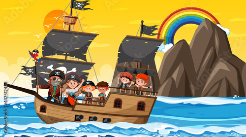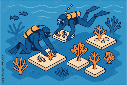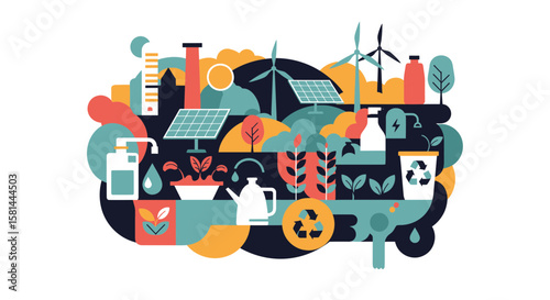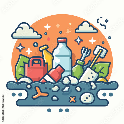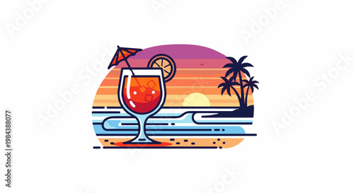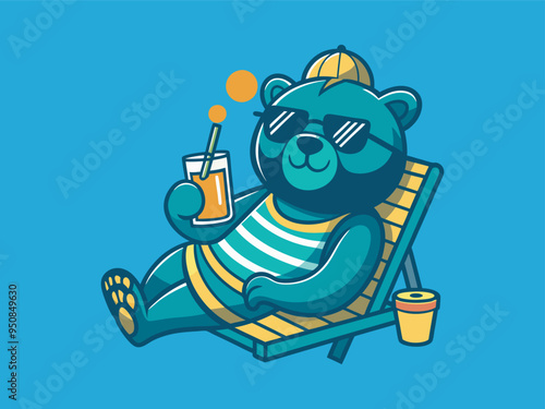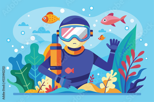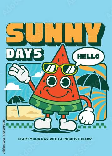 Векторная плоская иллюстрация летних каникул. Пляжные аксессуары: шлепанцы, солнцезащитные очки, морская звезда, ломтик арбуза, маска для подводного плавания с экзотической рыбой и солнцезащитный крем для рук. Летний пляжный отдых плакат баннер