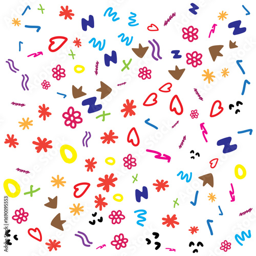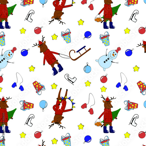 Летний бесшовный узор. Векторные нарисованные от руки кролики, солнцезащитные очки, рожки для мороженого и ломтики арбуза.