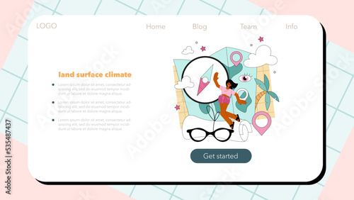Летний векторный шаблон веб-сайта, дизайн веб-страницы и целевой страницы для разработки веб-сайтов и мобильных сайтов. Летний пляжный отдых, путешествия по воздуху, туризм, концепция кругосветного путешествия.