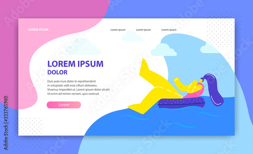 Летний векторный шаблон веб-сайта, дизайн веб-страницы и целевой страницы для разработки веб-сайтов и мобильных сайтов. Летний пляжный отдых, авиаперелеты и туризм, авиаперелеты, концепция услуг турагентства.