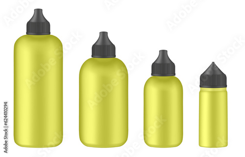 Набор подсолнечного масла. Векторная реалистичная иллюстрация пластиковых и стеклянных бутылок с растительным маслом для приготовления пищи с растениями подсолнечника.