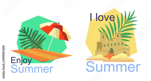 Тюбики для упаковки солнцезащитного крема, вырезанный из бумаги экзотический пляжный фон, зонтик, шлепанцы, очки в круглой оправе, векторная иллюстрация. Крем для защиты от солнечных ожогов, шаблон рекламы косметического продукта summer beauty.