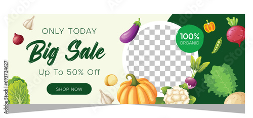 Корзина для покупок в супермаркете, полная овощей и фруктов, векторная иллюстрация в стиле бумажного искусства. Плакат со свежими овощами, шаблон дизайна баннера.