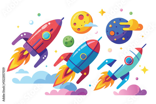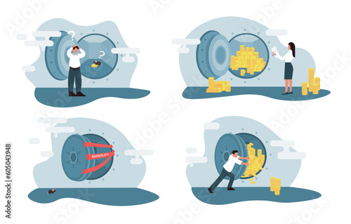 Набор значков серфера, векторная иллюстрация дизайна в плоском стиле, изолированная на белом фоне. Молодые мужчины и женщины с крутыми мультяшными персонажами катаются на океанской волне.