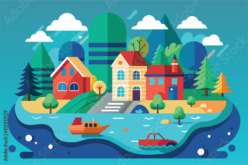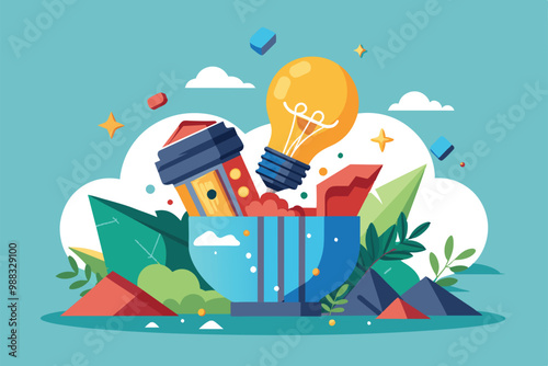 Векторная иллюстрация дизайна в плоском стиле для серфинга. Доска для серфинга, гидрокостюм, маска, водный скутер, солнцезащитный крем, кокосовый коктейль и океанская волна. Оборудование для серфинга, одежда и аксессуары для веб-баннера, веб-страницы.