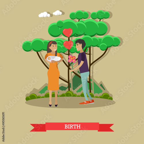 Векторная иллюстрация счастливой девушки, закрывающей глаза парня руками. Неожиданный концептуальный элемент дизайна в плоском стиле.