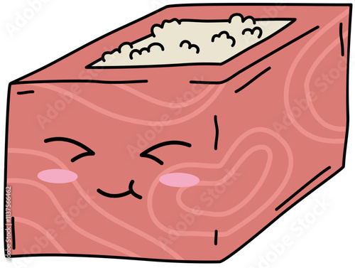 Суши векторный японский персонаж с милой едой. Забавный значок сашими каваи из мультфильма о роллах, изолированный на белом фоне