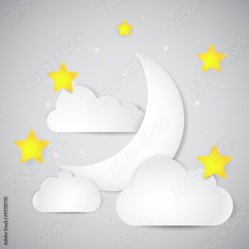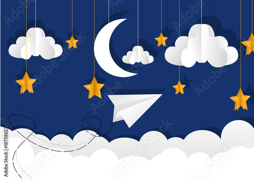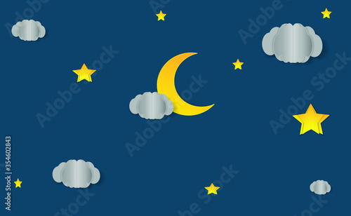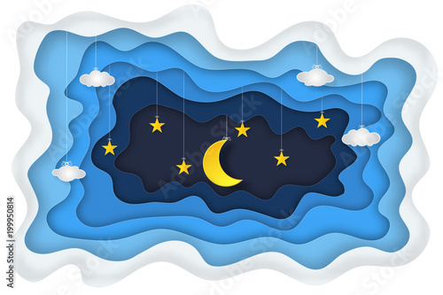 Векторный многослойный стиль вырезки из бумаги милый плюшевый мишка, спящий на полумесяце, надпись спокойной ночи. Креативная красивая композиция sweet dreams для открытки, баннера, листовки, плаката и т.д.