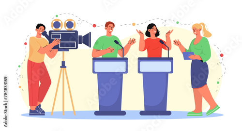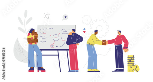Крошечные счастливые люди делают большой вкусный вишневый кекс, векторная иллюстрация. производство сладостей, кондитерских изделий, кондитерских композиций для веб-баннера, страницы сайта и т.д.
