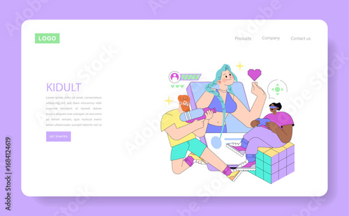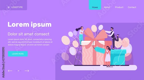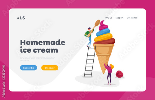 Сладкий векторный шаблон веб-сайта, дизайн веб-страницы и целевой страницы для разработки веб-сайтов и мобильных сайтов. Концепция производства сладостей с людьми, украшающими вкусный вишневый кекс.