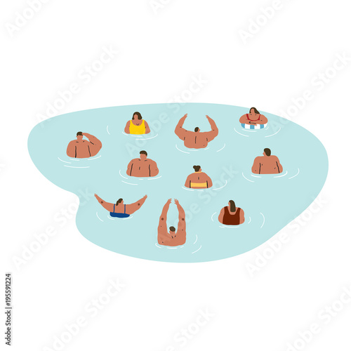 Плавающий дизайн целевой страницы, набор шаблонов баннеров веб-сайта, плоская векторная иллюстрация. Водные виды спорта в бассейне, соревнования по прыжкам в высоту, тренировки. Женщина прыгает с трамплина для прыжков в воду.