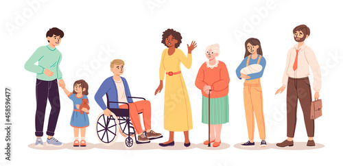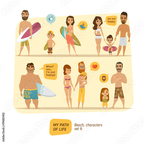 Красивые пляжные девушки в купальниках, векторная плоская изолированная иллюстрация. Плавательные костюмы от купального костюма до бикини. Летняя коллекция купальников. Эволюция купальника с 1890-х по 2010-е годы.