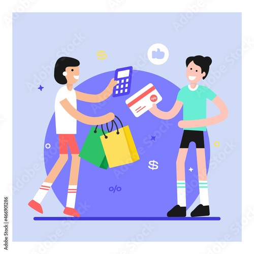 Портной или дизайнер снимает мерки с молодой симпатичной женщины-клиентки в векторной иллюстрации студии modern fashion atelier. Концепция пошива нового модного наряда или вечернего платья