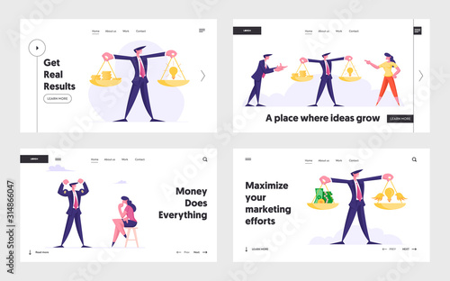 Векторный шаблон веб-сайта магазина портных, дизайн веб-страницы и целевой страницы для разработки веб-сайтов и мобильных сайтов. Швейная мастерская, ателье, концепция одежды на заказ с микро-персонажами, огромный манекен.
