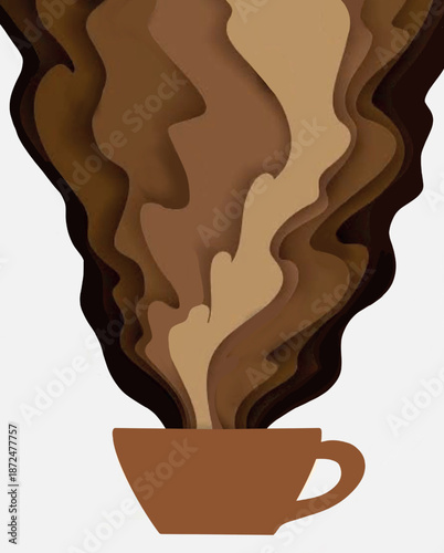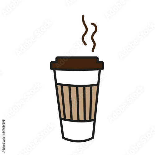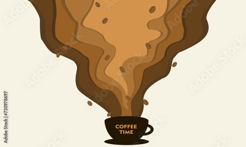 Элемент дизайна в стиле вырезки из кофейной бумаги навынос. Векторная иллюстрация одноразовой кофейной чашки с кофейными брызгами и кофейными зернами, изолированными на белом фоне.