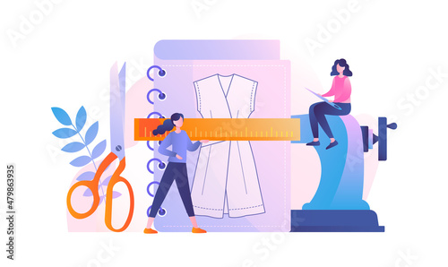 Девушка делает татуировку в салоне, векторная иллюстрация дизайна в плоском стиле. Молодой профессиональный татуировщик с машинкой и чернилами. Концепция услуг тату-студии для веб-баннера, страницы веб-сайта и т.д.