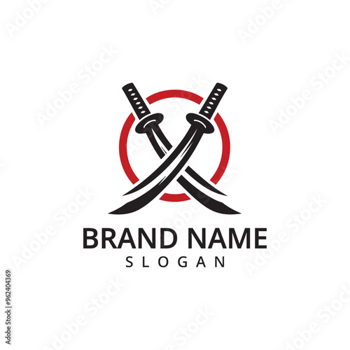 Этикетка тату-студии, эмблема, векторный шаблон логотипа. Реалистичные две красные скрещенные тату-машинки, бутылка с чернилами и красная лента на белом фоне.