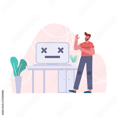 Профессиональный мастер-татуировщик, делающий татуировку с помощью машины и чернил, векторная плоская иллюстрация. Искусство татуировки. Услуги тату-салона, студии и салона красоты.