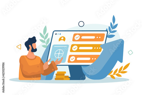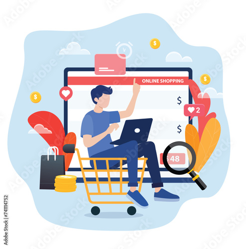 Огромный интернет-магазин портативных компьютеров и мужские и женские персонажи, совершающие безналоговые покупки в Интернете, векторная иллюстрация. Концепция возврата НДС для веб-баннера, страницы веб-сайта и т.д.