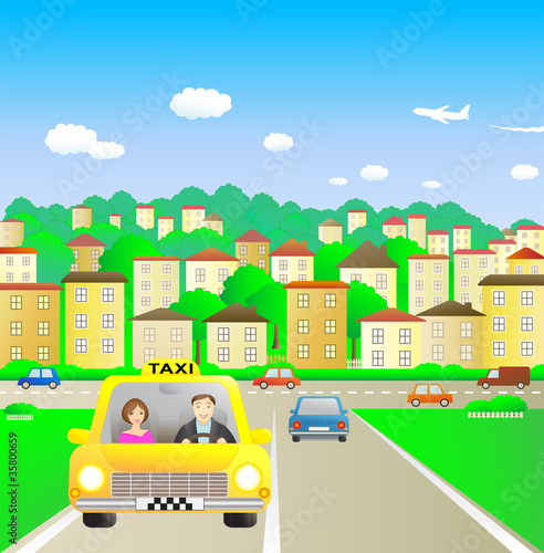 Векторная иллюстрация женщины, ловящей такси, вызывающей такси. Элемент дизайна концепции уличного движения в плоском стиле.