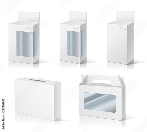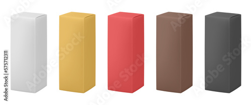 Набор макетов упаковки черного чая, векторная иллюстрация. Реалистичные пустые коробки для упаковки чая, пакетики с прозрачными окнами и чайный пакетик.