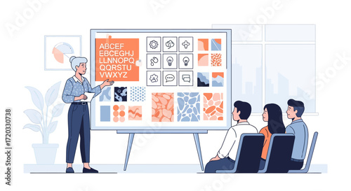 Учитель шахмат, тренер, обучающий персонажей мужского пола играть в стратегическую настольную игру, плоская векторная изометрическая иллюстрация. Шахматная академия, тренировки, курсы, школа, клуб.