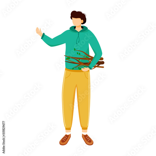 Подросток-хулиган с векторной иконкой деревянной летучей мыши, изолированной на белом фоне