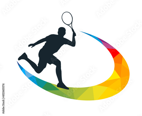 Теннисист с ракеткой и мячом белый силуэт, векторная иллюстрация в стиле бумажного искусства. Чемпионат по теннисным спортивным играм.