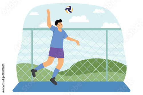 Теннисист с теннисной ракеткой на корте. Иллюстрация векторной концепции спорта и фитнеса. Женщина прыгает со скакалкой. Летние тренировки и здоровый образ жизни. Шаблон дизайна веб-сайта.