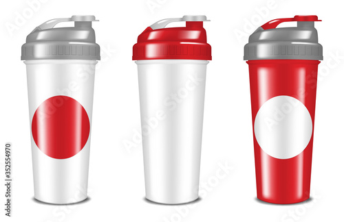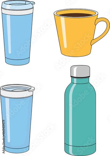 Набор макетов дорожных кружек с термокружкой. Векторная реалистичная иллюстрация, изолированная на белом фоне.