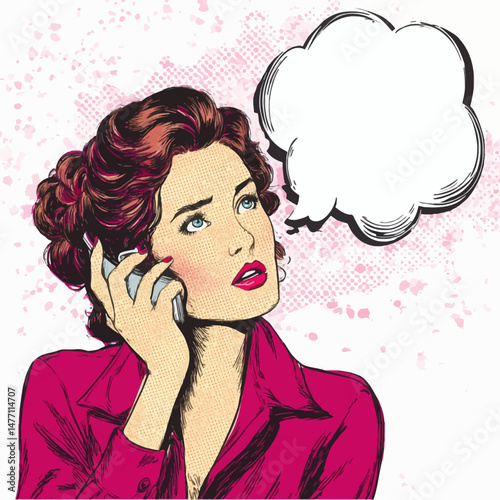 Мыслящая женщина с речевым пузырем. Векторная иллюстрация в стиле комиксов ретро-поп-арта.